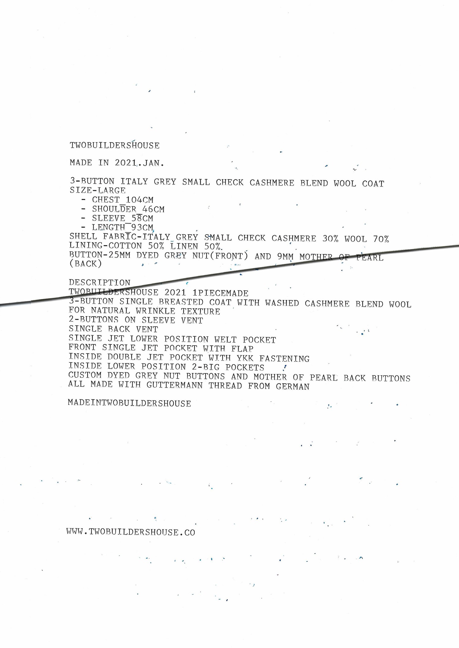 [1PIECEMADE] 3-BUTTON ITALY GREY SMALL CHECK CASHMERE BLEND WOOL COAT